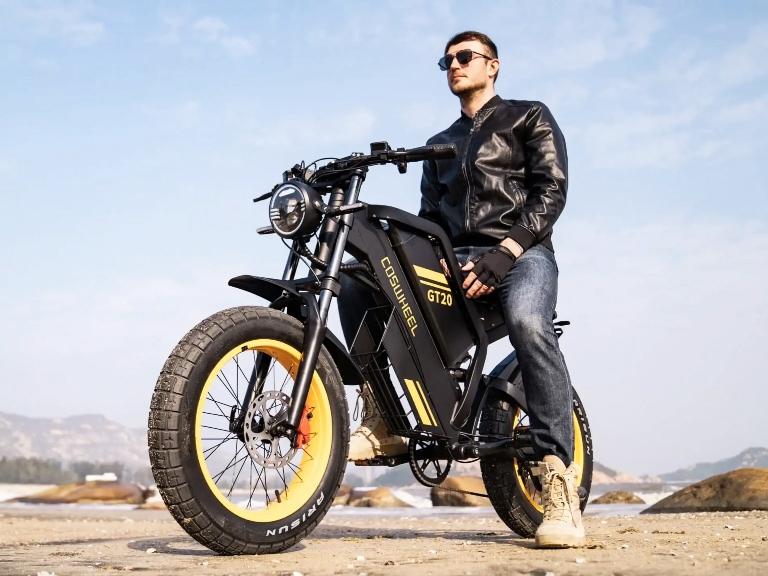 Tidak hanya soal tenaga, Coswheel GT20 juga unggul dalam desain. Ban besar 20 inci dengan tipe fat tire memberikan stabilitas ekstra di berbagai permukaan jalan, mulai dari aspal kota hingga jalur tanah ringan.