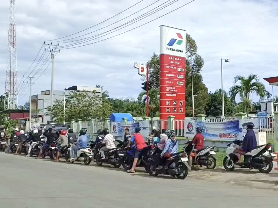 Ratusan roda dua dan roda empat mengular hingga meluber ke badan jalan, memicu kemacetan parah. Kepanikan warga dipicu isu kelangkaan bahan bakar minyak (BBM) akibat ketegangan global antara Iran, Amerika Serikat, dan Israel.